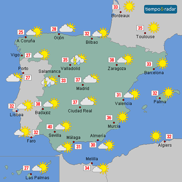- Pela mañana, va predominar l’ambiente soleyero y con escases nubes. Va haber dalgunes de tipu mediu y alto, moviéndose dende’l suroeste, por cuenta del aproximamientu d’una baxa atlántica.