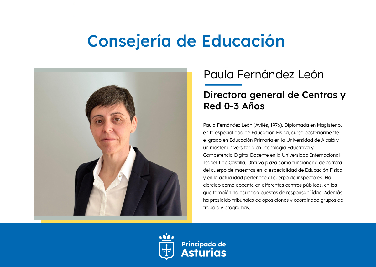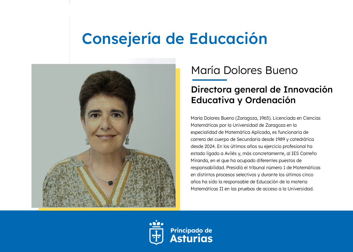 El Conseyu de Gobiernu aprobó esti xueves el nomamientu de María Dolores Bueno como directora xeneral d’Innovación Educativa y Ordenación, y de Paula Fernández como directora de Centros y Rede 0-3, dientro d’una restructuración de la Conseyería d’Educación impulsada pola nueva titular, Eva Ledo, coles mires d’avanzar nel cumplimientu del pactu ‘Asturies Educa’. A les nueves directores xenerales, que sustituyen respectivamente a David Artime y Cristina Blanco, súmase’l nomamientu d’un nuevu secretariu xeneral: Francisco José Díaz Ortiz, en sustitución de Begoña Fernández.