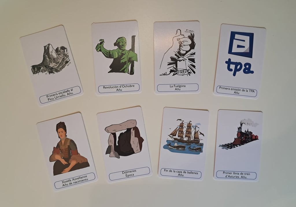 Asturies na Historia ye un xuegu de cartes sobre la historia d’Asturies, un xuegu de la familia de los time-line nel qu’a traviés de les sos 45 cartes coles sos illustraciones va percorrese la historia de la nuestra tierra.
