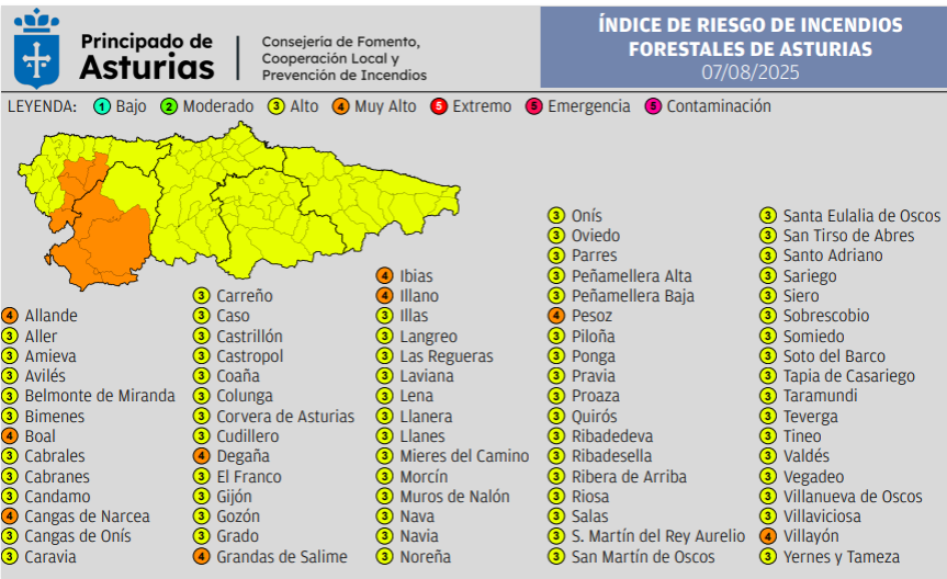 Recuérdase que col índiz 4 🟠, riesgu de quema bien alto, tán prohibíes les quemes.