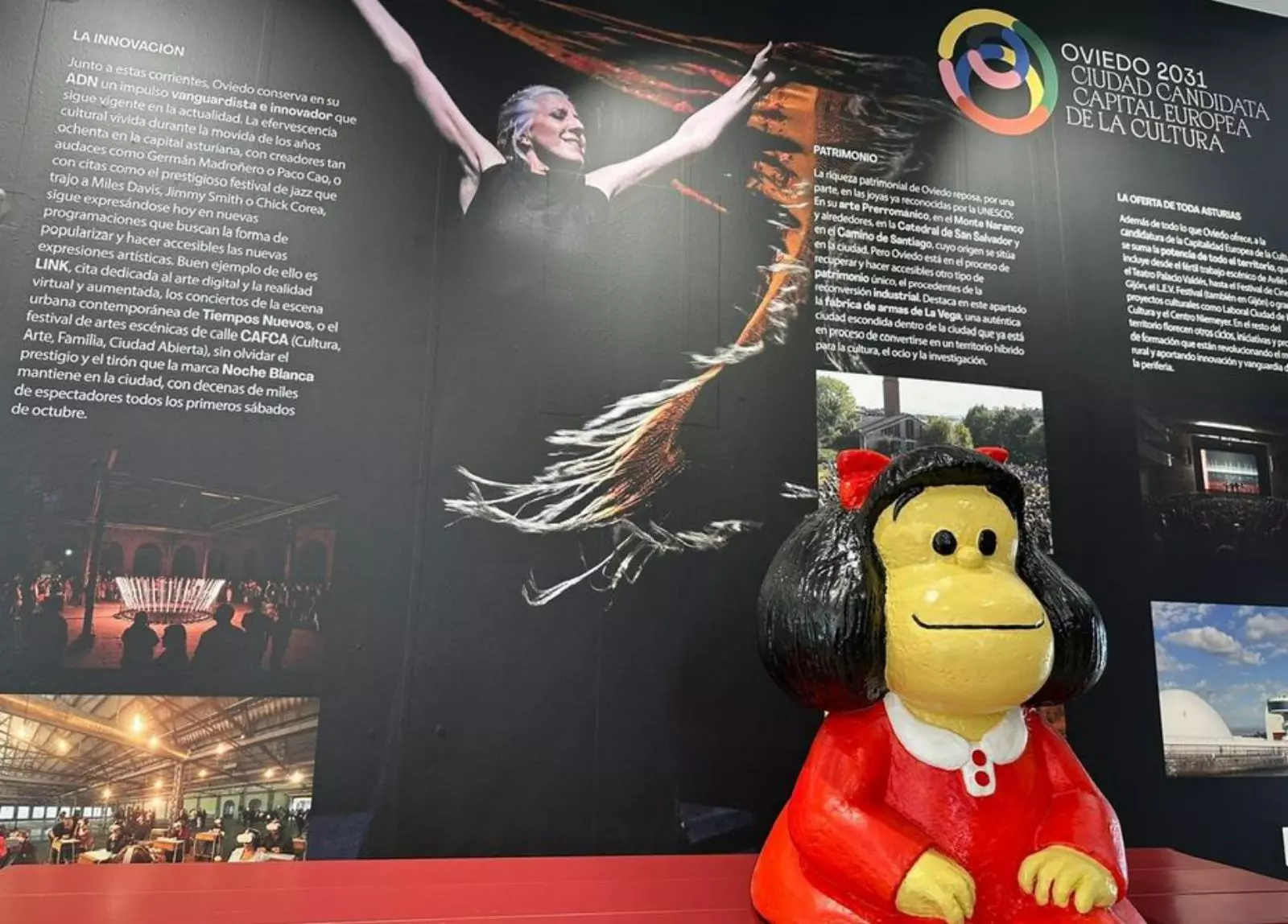 Va haber tamién espaciu pa la imaxe y l’alcordanza, con un «photocall» interactivu que va dexar a los asistentes posar con fondos emblemáticos de la ciudá gracies a un sistema de croma. Les fotografíes van poder compartise en redes sociales y na web oficial del proyectu, reforzando la implicación ciudadana nesta carrera cultural. Y como n’años anteriores, nun va faltar nel esterior del pabellón la siempres fotografiada estatua de Mafalda, movida dende’l so allugamientu habitual nel Campu San Francisco.