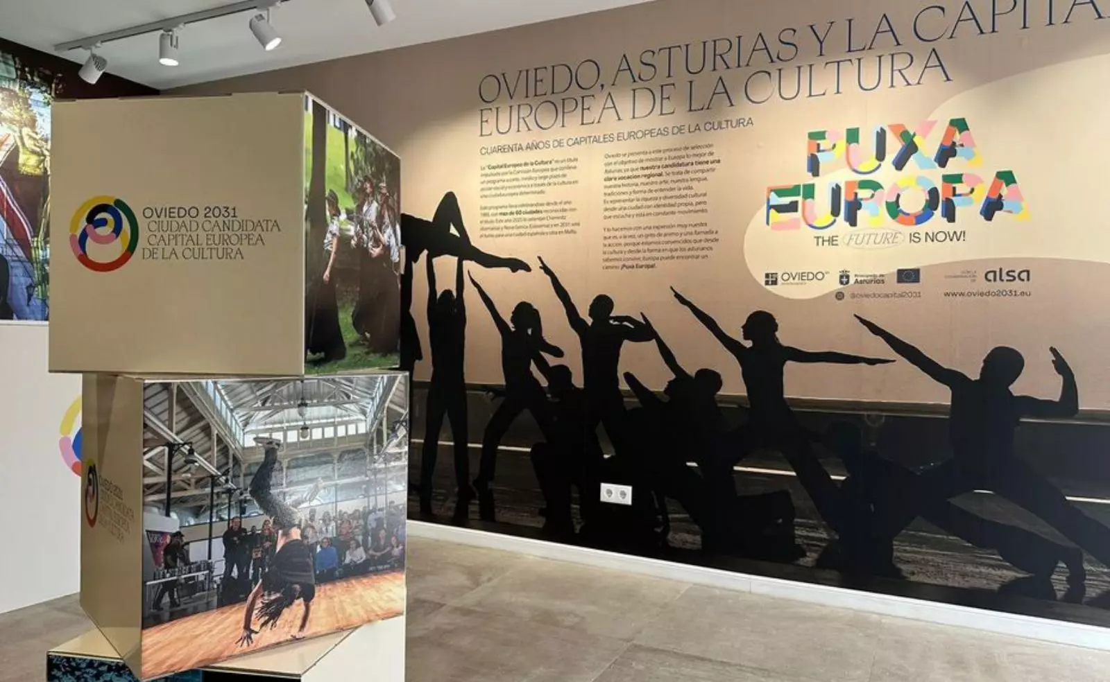 El pabellón uvieín va convertise nun escaparate del potencial cultural de la ciudá, con recursos espositivos, paneles informativos, conteníos audiovisuales y actividaes empobinaes a tolos públicos. Al traviés d’una cuidada puesta n’escena —con cubos, paneles y espacios interactivos— los visitantes van poder conocer de barganal les fortaleces coles qu’Uviéu allega a esta prestixosa reconocencia europea, nuna candidatura que tesciende les llendes municipales y quier representar a toa Asturies.