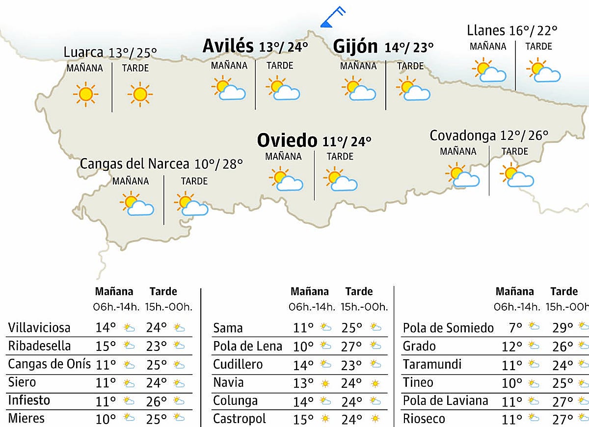 El miércoles va ser un día soleyeru en tol Principáu con unes temperatures que van xubir 2 o 3 ºC más que les del martes. Y, por si fora poco, el xueves vamos siguir teniendo sol y volverán xubir un pocu más les temperatures.