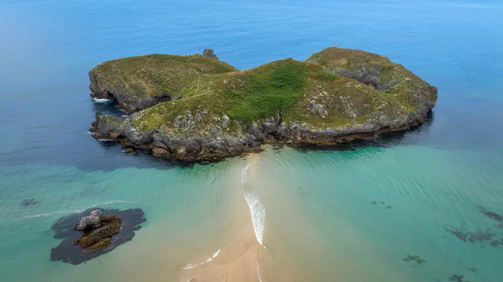 La desconocida sablera d’Asturies con sable blancu y dos orielles que solo se puede visitar cola marea baxa. De mal accesu, lo más senciello ye llegar a ella al traviés de l’agua, dende la sablera de San Martín. 20 minutos /LNE