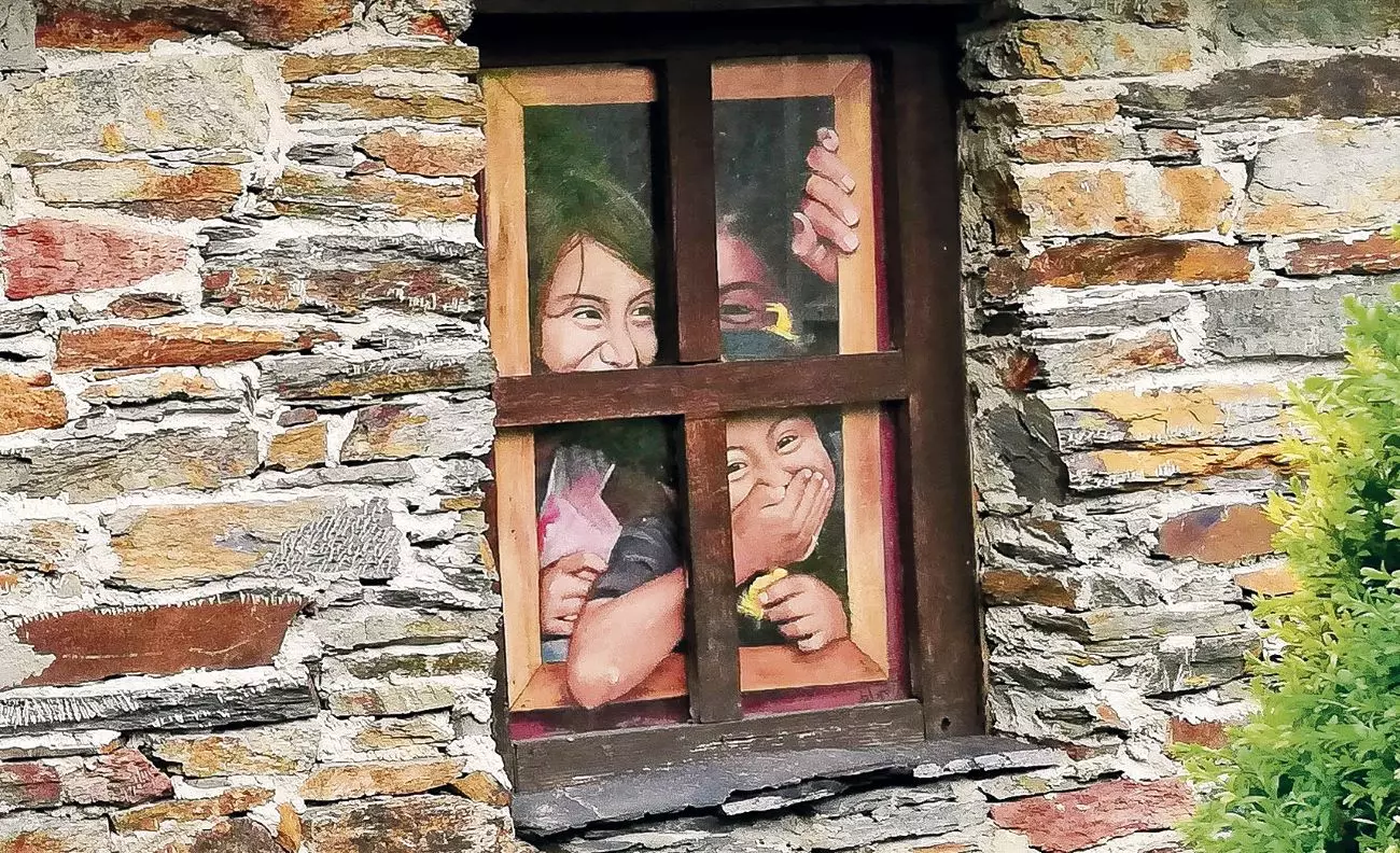 El pueblu asturianu de Banksy: esta ye la orixinal y desconocida aldega llena de semeyes de los sos vecinos en puertes, ventanes y fachaes. La idea de pintar estos murales, que recuerden a los del famosu artista inglés anónimu, partió de l’artista María del Roxo, con raigaños familiares nesti bella aldega. LNE