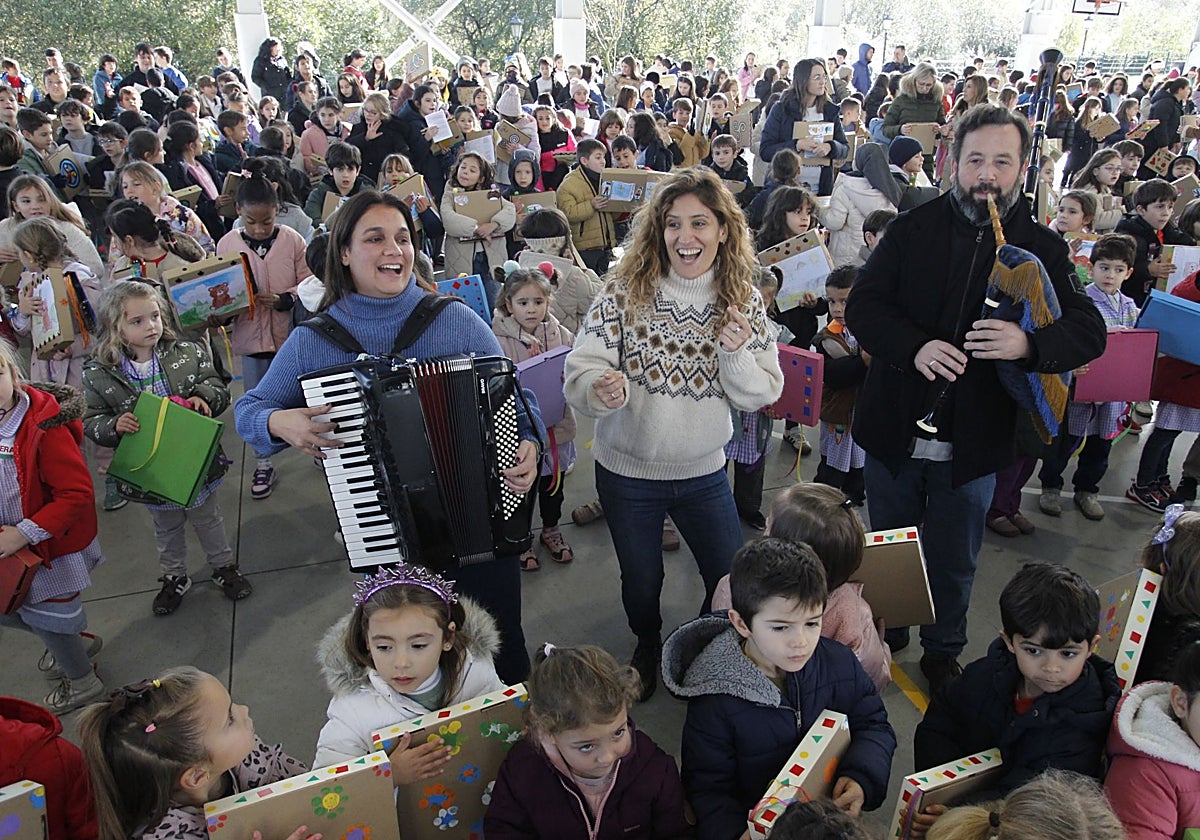 La implicación de los escolares foi clave para l’ésitu de la xornada. Provistos de panderetes feches por ellos mesmos, el so entusiasmu viose compensáu cola presencia d’una d’Anabel Santiago, quien s’amosó encantada de participar nel eventu del colexu Carmen Ruiz-Tilve. «Para mi ye una ilusión tar equí nesti centru porque tán entornaos cola llingua y cola cultura asturiana», declaró.