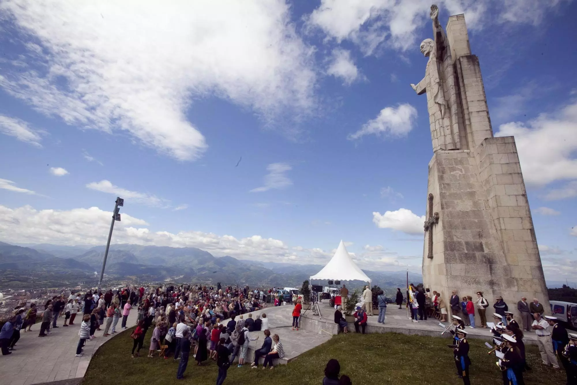 Más nuevu que’l Cristu brasileñu El Cristu Redentor asturianu ye más nuevu que’l brasileñu. La so construcción remató nel añu 1981 (frente al so hermanu de Ríu de Jainero, que foi inauguráu’l 12 d’ochobre de 1931) y foi sufragáu principalmente gracies a les donaciones de los fieles. La primer piedra que se punxo’l 12 de xunu de 1963 foi una roca estrayida del santuariu de Cuadonga.