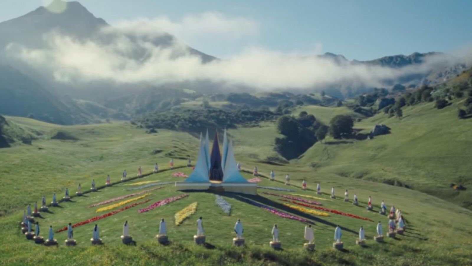 «Nun se dieron cuenta de qu’en plenu agostu, que yera cuando diben rodar la escena, el valle nun diba tar tolo verde que suel tar en primavera. Asina que l’equipu punxo’l verde artificial dientro del círculu y tolo de fora tuvieron que recrealo por ordenador, en CGI», esplicó Sowick.