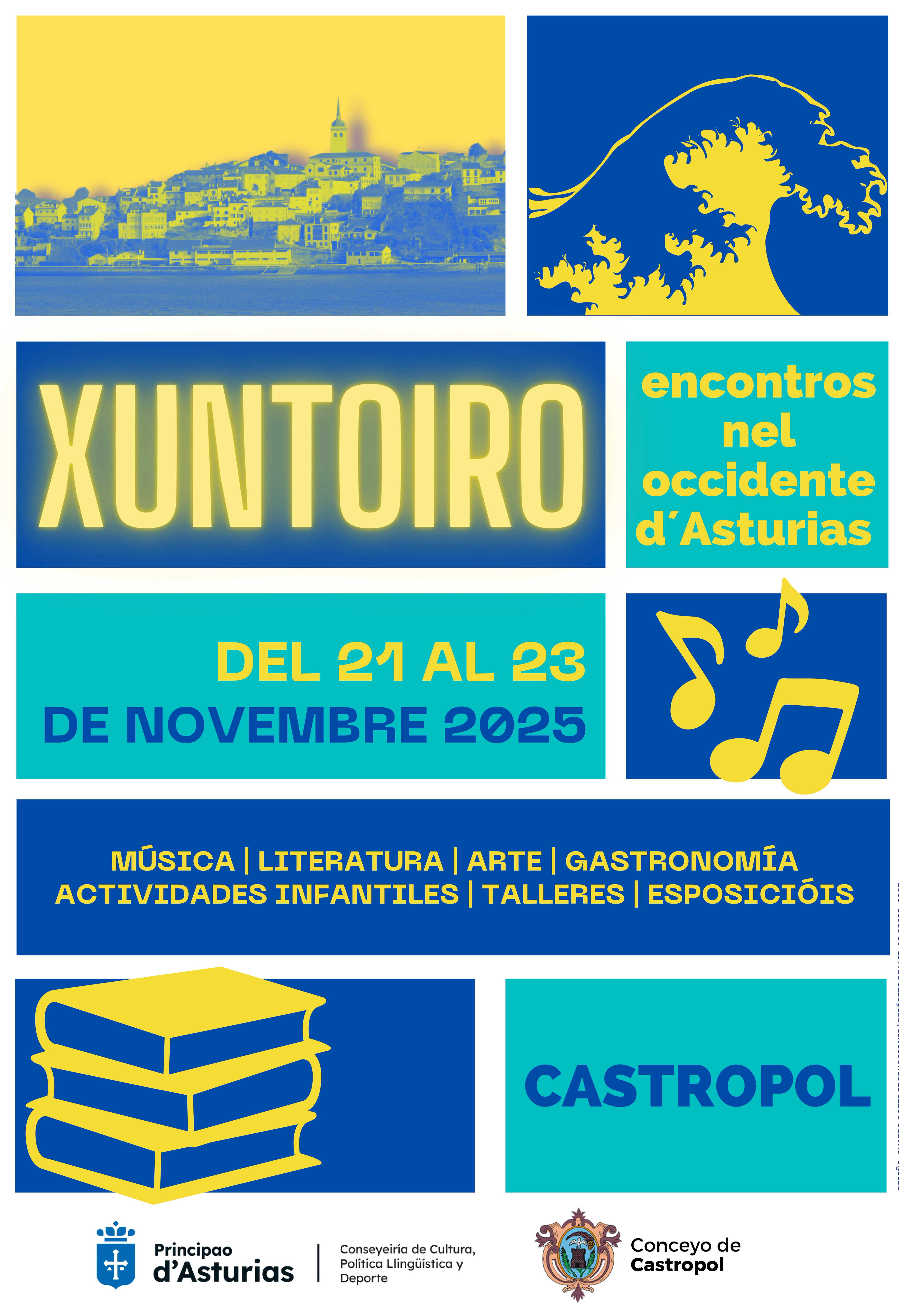 Actaualidá / El Principáu entama en Castropol l’alcuentru Xuntoiro para favorecer l’intercambiu ente los sectores culturales qu’usen l’eonaviego. L’eventu, que se va celebrar del 21 al 23 d’esti mes, inclúi conciertos, presentaciones lliteraries, espectáculos infantiles, esposiciones y un recital poéticu en barca pola ría del Eo. Nota prensa Xuntoiro 2025 (trilingüe)/Programa Xuntoiro 2025Un alcuentru qu’amuesa la vitalidá creativa de la llingua eonaviega. Los díes 21, 22 y 23 d’esti mes podrá esfrutase d’esti eventu, que busca favorecer l’intercambiu de los distintos sectores culturales qu’utilicen esta llingua.
