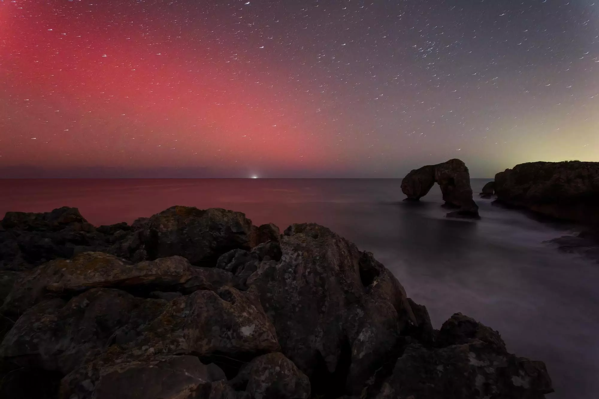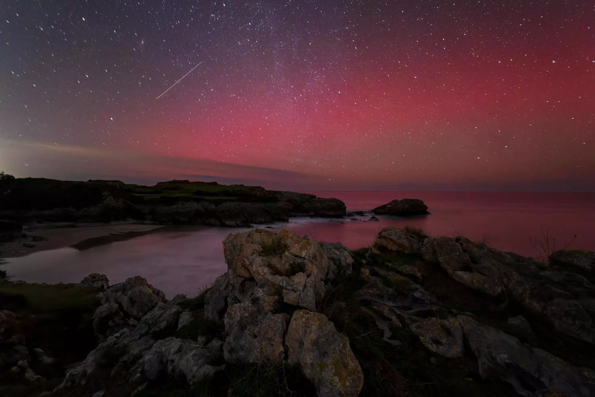 Aurora boreal nel Castru de les Gaviluetes, en Villahormes (Llanes)
