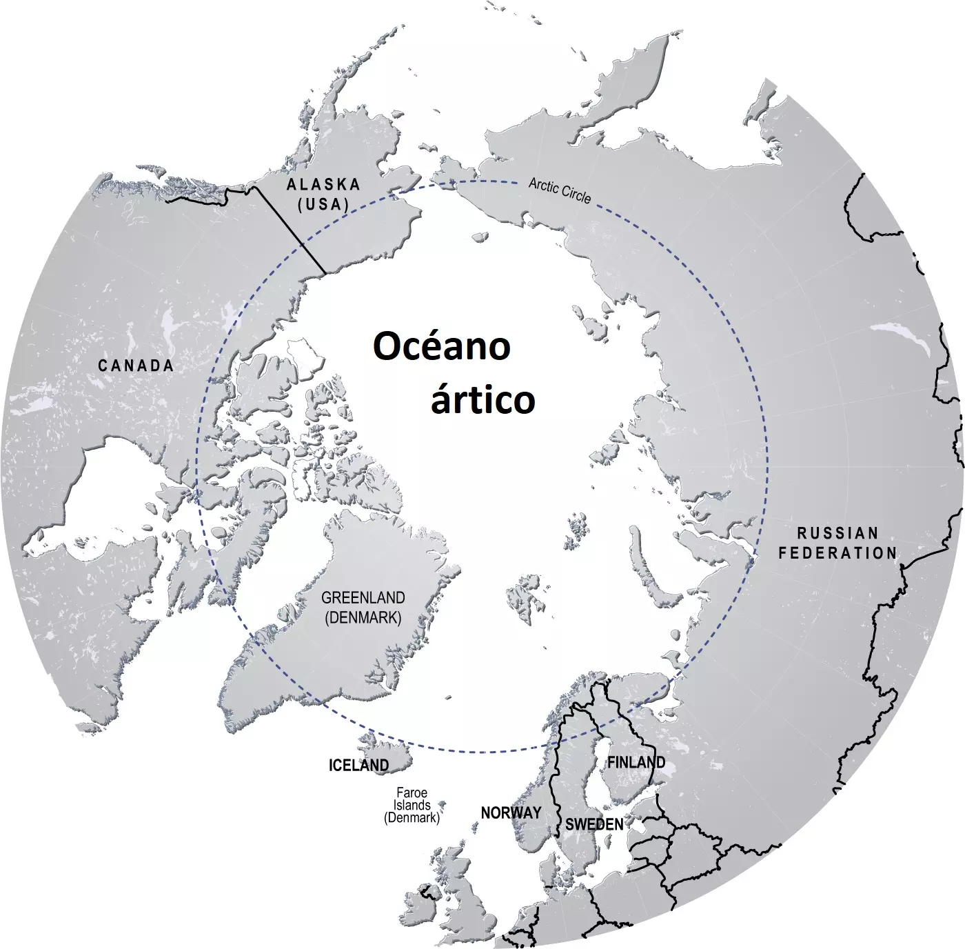 • Geografía: Océano Ártico rodeado por tierra (Canadá, Rusia, Groenlandia, etc.).