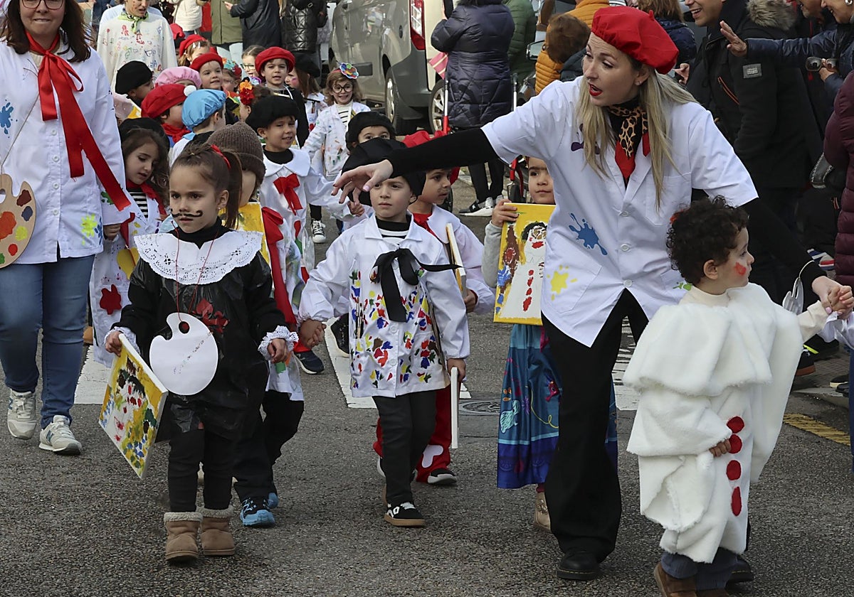 Los escolares protagonizaron un percorríu creativu pola obra y la figura de dalgunos de el pintores asturianos más representativos, como Evaristo Valle y Nicañor Piñole. A última hora, foi un desfile llenu d’imaxinación y con muncho llabor detrás, yá que cada grupu trabayó mientres les últimes selmanes distintes autores y estilos para faelo realidá.