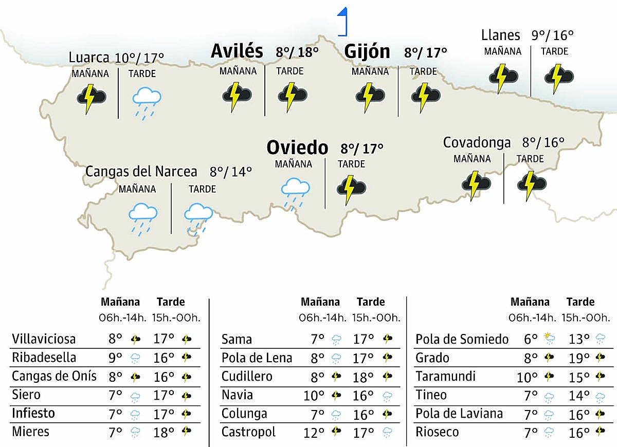 El martes vamos tener tiempu estable pela mañana y nun se refuguen precipitaciones pela tarde. La cota de nieve va superar los 2200 o 2300 metros. Los vientos van siguir soplando de suroeste moderaos con raches fuertes nel cordal y en zones espuestes del occidente. Les temperatures van siguir xubiendo. Les máximes van xubir nuevamente en toa Asturies, sobremanera na metá oriental. Les mínimes van xubir de forma bien significativa.
