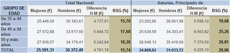 L’analís por franxa d’edá revela que la fienda salarial pasa del 47,1 % ente los menores de 18 años al 21 % ente los 18 y 25 años y el 11,3 % ente los 26 y los 35 años, una etapa marcada pola progresión profesional de les muyeres “gracies a la so preparación y cualificación”.