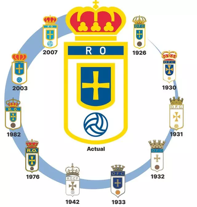Esti elementu foi unu de los motivos principales polos que l’escudu del Uviéu sufrió numberoses alteraciones. Na so mayoría por criterios estilísticos, anque la política tamién influyó. De resultes del españíu de la Segunda República, la primer midida que tomaron munchos clubes que teníen la corona monárquica foi retirala en 1931. Meses más tarde, dalgunos como l’Uviéu decidieron incluyir una corona mural por motivos estéticos, que se caltuvo hasta l’empiezu de la Guerra Civil.