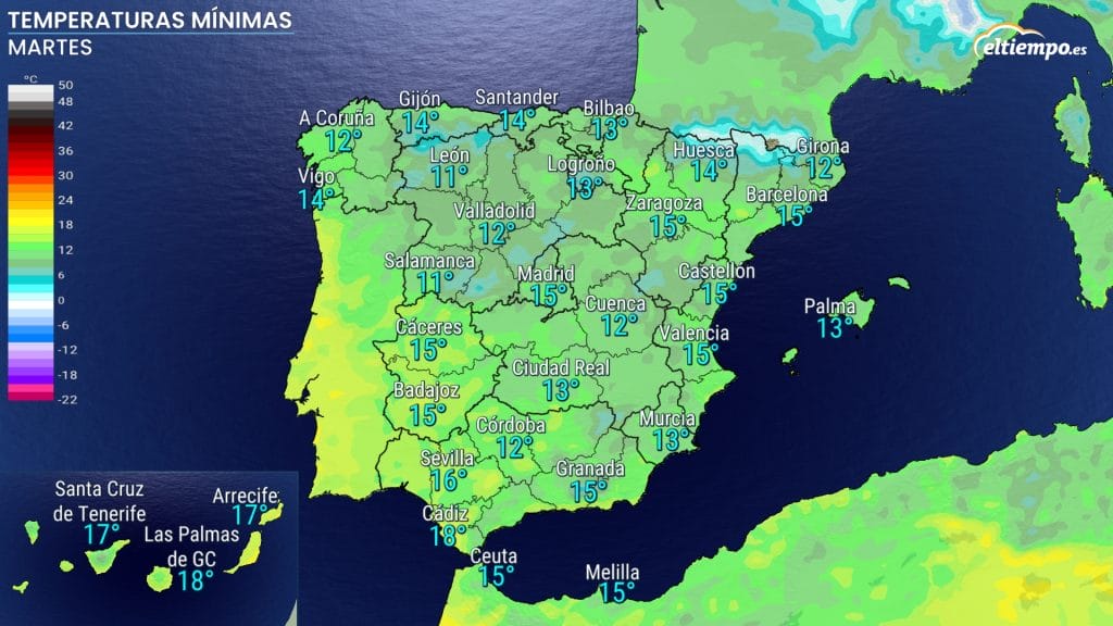 Les peratures máximes van xubir un pocu más nel terciu sur asturianu y van caltenese ensin cambeos importantes nel restu. Tocantes a les mínimes nun se refuguen dellos descensos locales bien llixeros nel interior.