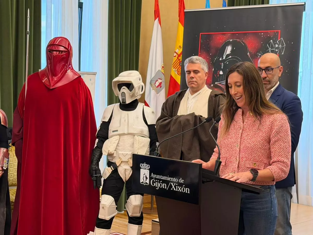 «Non solo falamos d’una xunta que va traer a cientos de persones, sinón que toos el xixoneses van tener la oportunidá d’esfrutar del ambiente y el coloríu espectacular que vamos poder esfrutar nes cais de la ciudá», afirmó la vicealcaldesa y titular de la Conceyalía de Turismu, la popular Ángela Pumariega, que comparó la llegada de los entusiastes de «La guerra de les galaxes», como se tradució n’España, con unu de los acontecimientos que más color dio a les cais y carreteres del conceyu l’añu pasáu, como foi’l casu de los Vespa World Days, xornaes nes que’l míticu modelu de moto italiana colonizó les carreteres y los llugares más icónicos del conceyu.