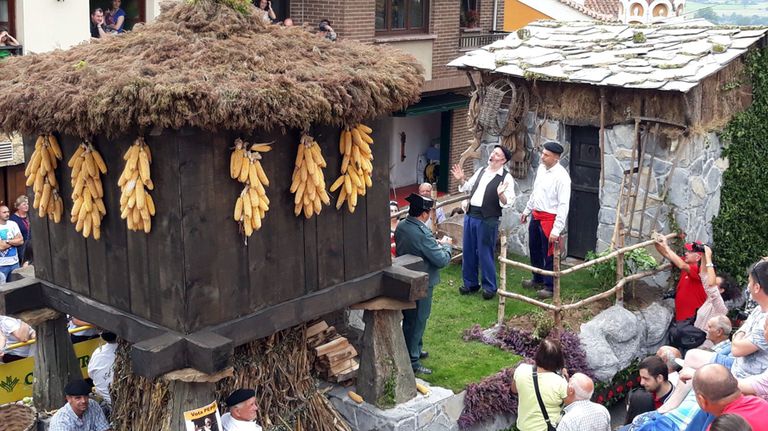 Una representación al pie de un horru asturianu nel desfile de Valdesoto.