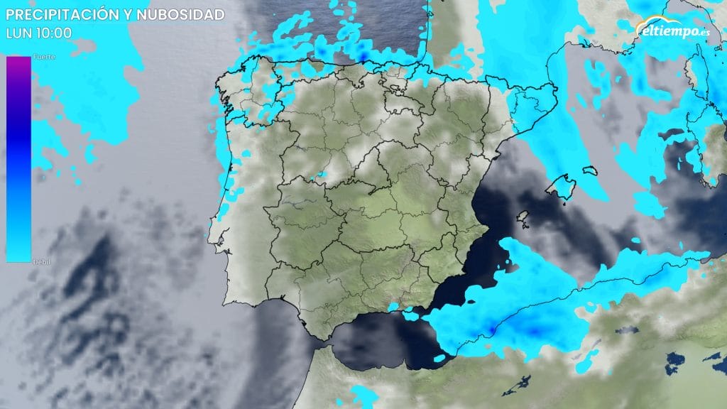 Mientres el martes, la nubosidad inda va poder siguir bien presente na metá oeste peninsular, onde entá van poder dase dellos bastios débiles.