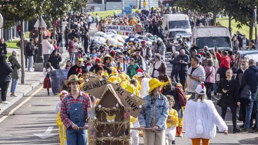 Los alumnos del colexu percuerren les cais del barriu con un animáu desfile. L’Antroxu anubrió de coloríu les cais de La Corredoria. Alumnos y profesores del colexu públicu Carmen Ruiz-Tilve desfilaron pola redolada del centru, con amarutes que prepararon nes aules nes últimes selmanes.