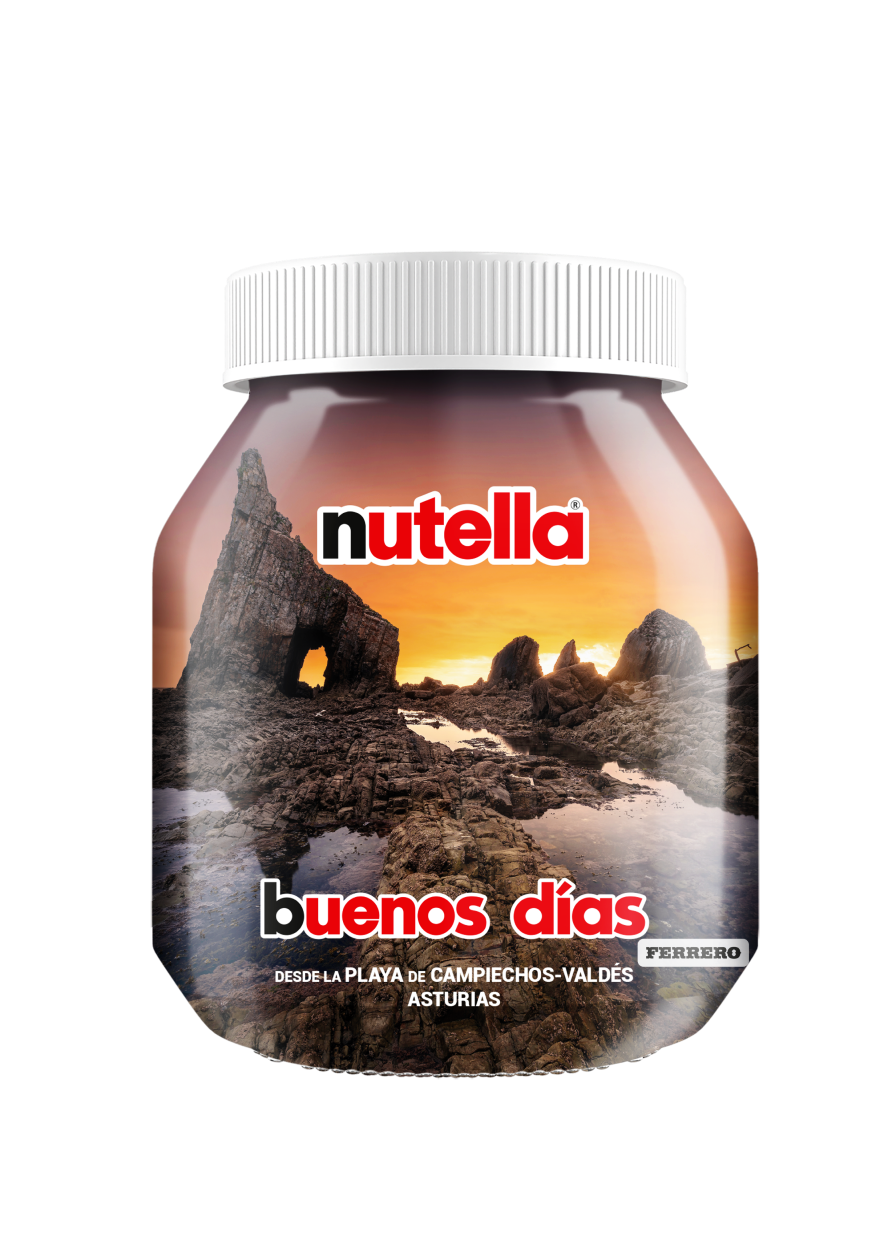 L’impresionante amanecer n’una sablera asturiana que protagoniza una campaña de publicidá. «Un bon día empieza en casa», reza’l eslogan. Un total de 17 llugares d’España protagonicen la nueva campaña de Nutella. Han estampáu 17 amaneceres nos sos tarros de crema de cacáu. Asturies ye la protagonista d’una remesa d’estos nuevos botes insipirados nel amanecer onde puede lleese «Bonos díes».