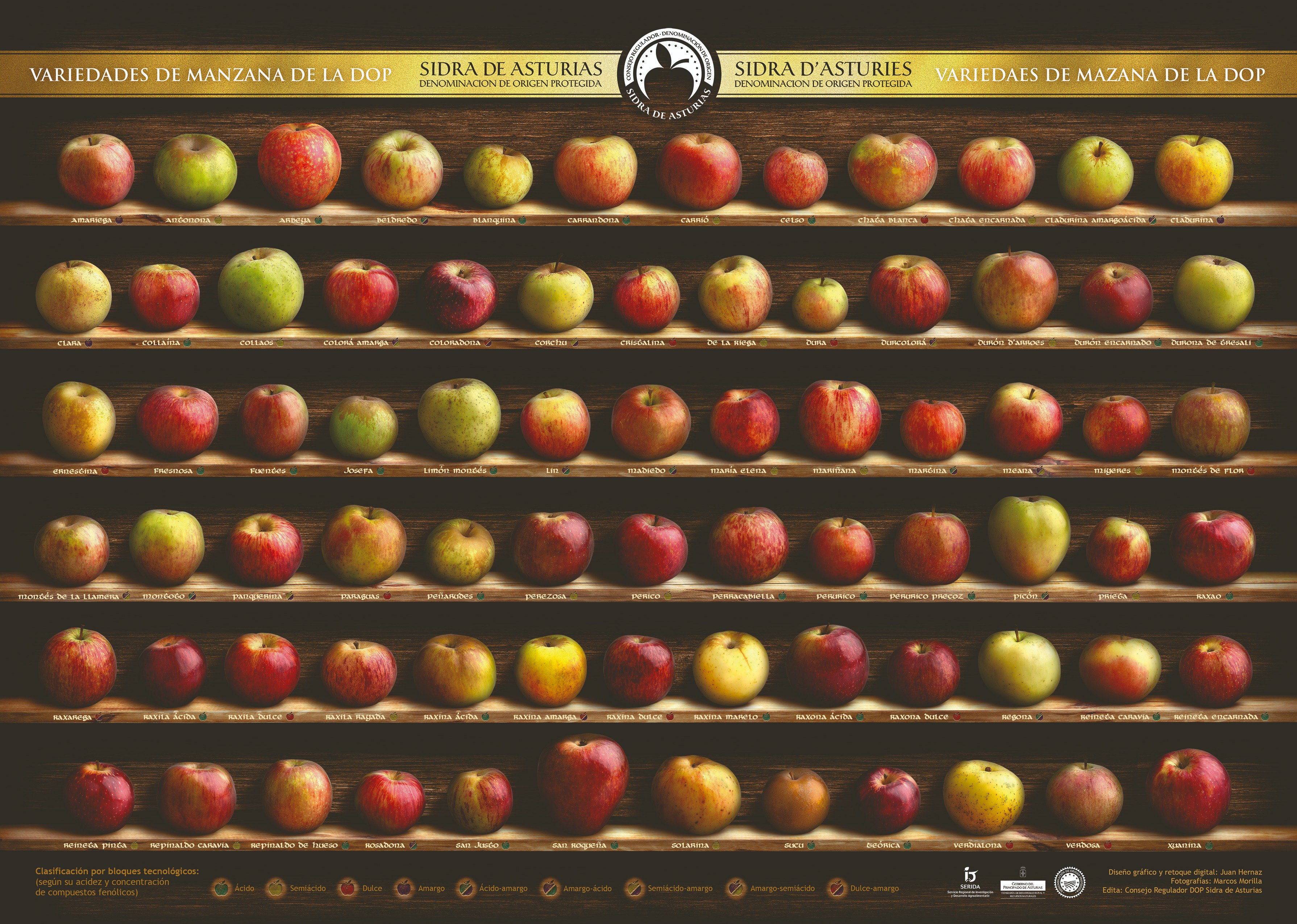 Estes son les 53 sidres amparaes, so la marca calidable europea Sidra d’Asturies. Etiquetes