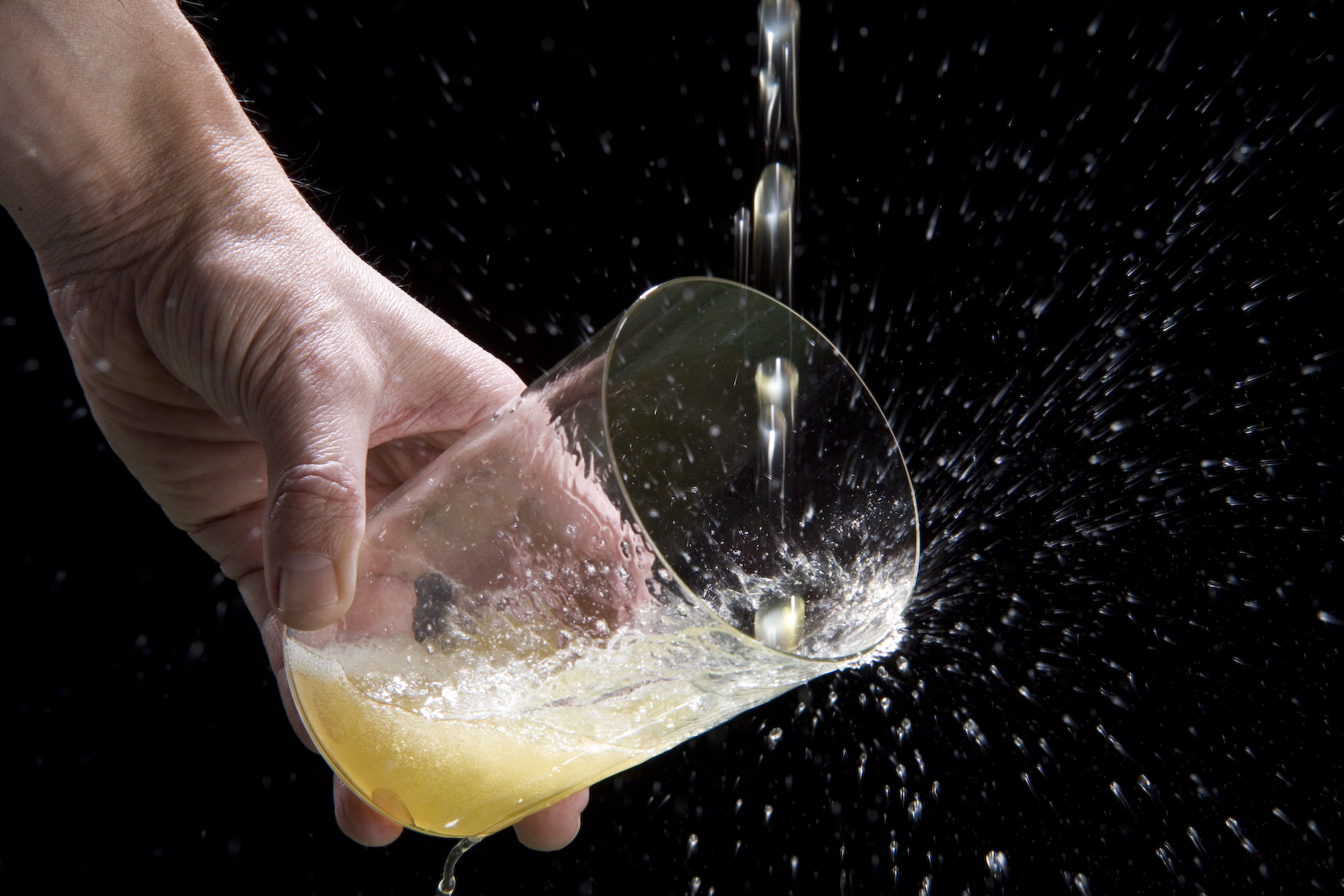 - El brazu que sostien la botella hai de tar espurríu percima de la cabeza.