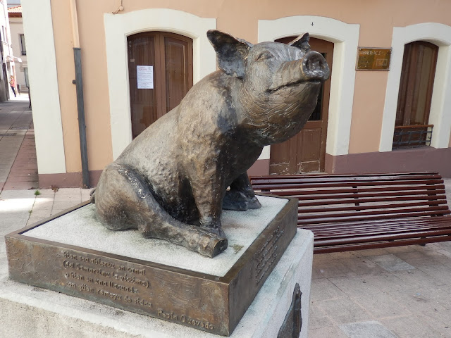 Monumento al «gochu» en Noreña: Obra en bronce a tamaño natural, realizada por el escultor langreano José Luís Iglesias Luelmo. Se colocó en el año 2001 en la pequeña plaza de la Avenida Flórez Estrada. La escultura es un homenaje al animal que aporta la materia prima a la importante industria chacinera del concejo. Fue realizada por iniciativa de los Caballeros de la Orden del Sabadiego.