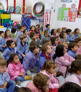 Esta semana un grupo de mayores que se reúnen en el Centro municipal del Llano han pasado por nuestro cole a contarnos cuentos;narrados, cantados, recitados,escenificados y sobre todo nos han traído sonrisas,ternura y cariño.Cuentos que nos hablaban de lejanos continentes;Asia,África,América…