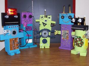Ya hemos cargado energías, así que vamos a relajar un poquito elaborando una manualidad. Os propongo que echemos un poquito de imaginación y construyamos un robot con material reciclado, con la ayuda de nuestros papis y hermanos. Cuando volvamos al cole, podéis llevar los trabajos elaborados y decoraremos nuestro «aula del futuro» con los robots de todos/as los/as niños/as. Ya tenemos algunos amigos robot elaborados por vosotros/as cuando podíamos ir al cole pero nos encanta sumar amigos/as, asi que hacemos hueco para todos los robots que vayáis elaborando.