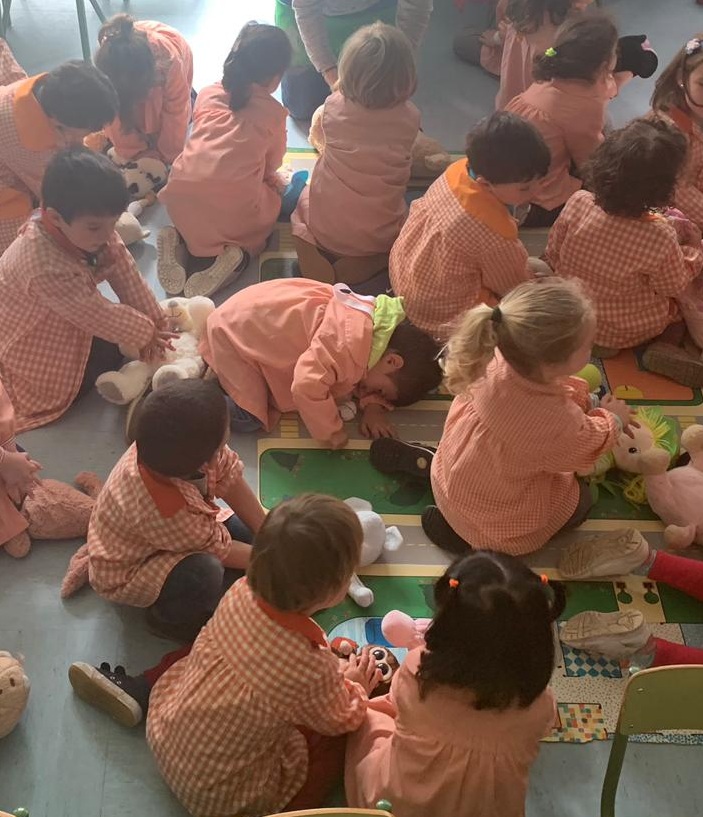 - Taller de R.C.P:con la ayuda de un peluche practicamos qué hacer si una persona está desmayada y no hay ningún mayor que pueda ayudarnos.Lo más importante pedir ayuda al 112 .También practicamos cómo colocar a la persona de lado.