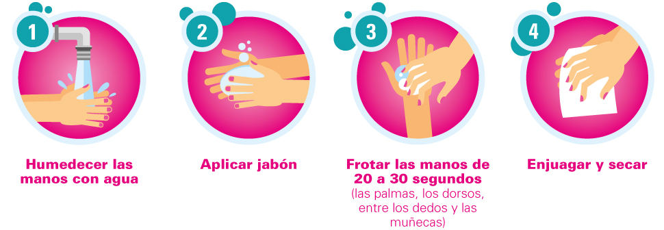 - Cómo se lavan bien las manos: no basta con un simple enjuagado con agua, para retirar los restos de suciedad y de gérmenes debemos dedicarle entre 15 y 20 segundos y seguir los siguientes pasos: