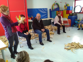 El martes comenzamos con la Esfoyaza. Los niños y niñas de 5 años pudieron escuchar y disfrutar con los abuelos de las historias y anécdotas que nos hablan de las tradiciones de nuestra tierra asturiana .
