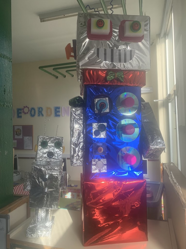Nos encantaría que conservaséis estos elaborados robots para cuando volvamos al cole. Podéis llevar los trabajos realizados y decoraremos nuestro «aula del futuro» con los robots de todos/as los/as niños/as. Ya tenemos algunos amigos robot elaborados por vosotros/as cuando podíamos ir al cole pero nos encanta sumar amigos/as, así que hacemos hueco para todos los robots que vayáis elaborando.