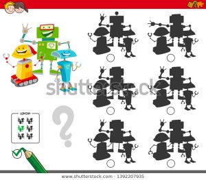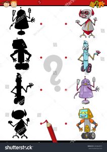 Cada silueta de robot tiene asociada su sombra correspondiente que deberás encontrar y asociar uniéndolos por parejas.