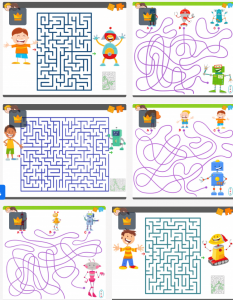 Ayuda en cada imagen a los/as niños/as a encontrar el camino correcto para llegar al robot perdido.