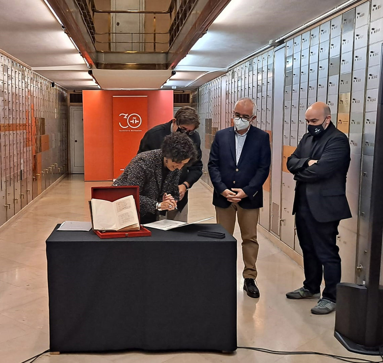 Nun actu d’homenaxe al poeta y sacerdote Fernán Coronas, seudónimu de Galo Antonio Fernández y Fernández-Cantera, Padre Galu (Cadaveu de Valdés, 7 d’agostu de 1884 – L.luarca, 29 de xineru de 1939), la conseyera de Cultura, Política Llingüística y Turismu del Principáu d’Asturies y miembru de l’Academia de la Llingua Asturiana, Berta Piñán, depositó na Caxa de les Lletres del Institutu Cervantes manuscritos del arquivu familiar y aprofió que se trata «del primer legáu d’un autor qu’escribe n’asturianu».