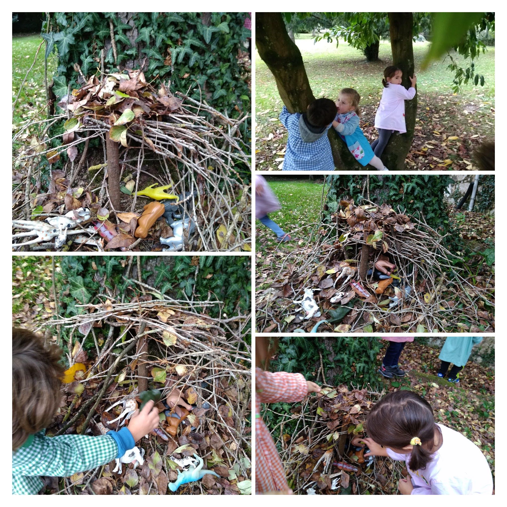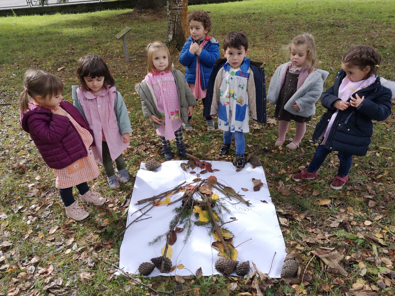 Nuestra fantástica «Viesquina» es un observatorio privilegiado de las estaciones y además nos ofrece numerosos materiales naturales. Salir, disfrutar del aire libre, recoger, clasificar y crear. ¡Un gustazo!