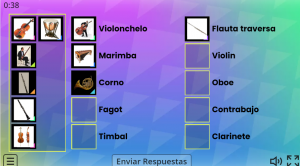 En este juego debes tener en cuenta que a la trompa también se le puede llamar corno y al xilófono, marimba.