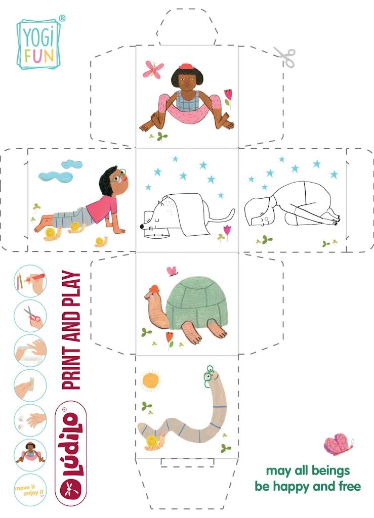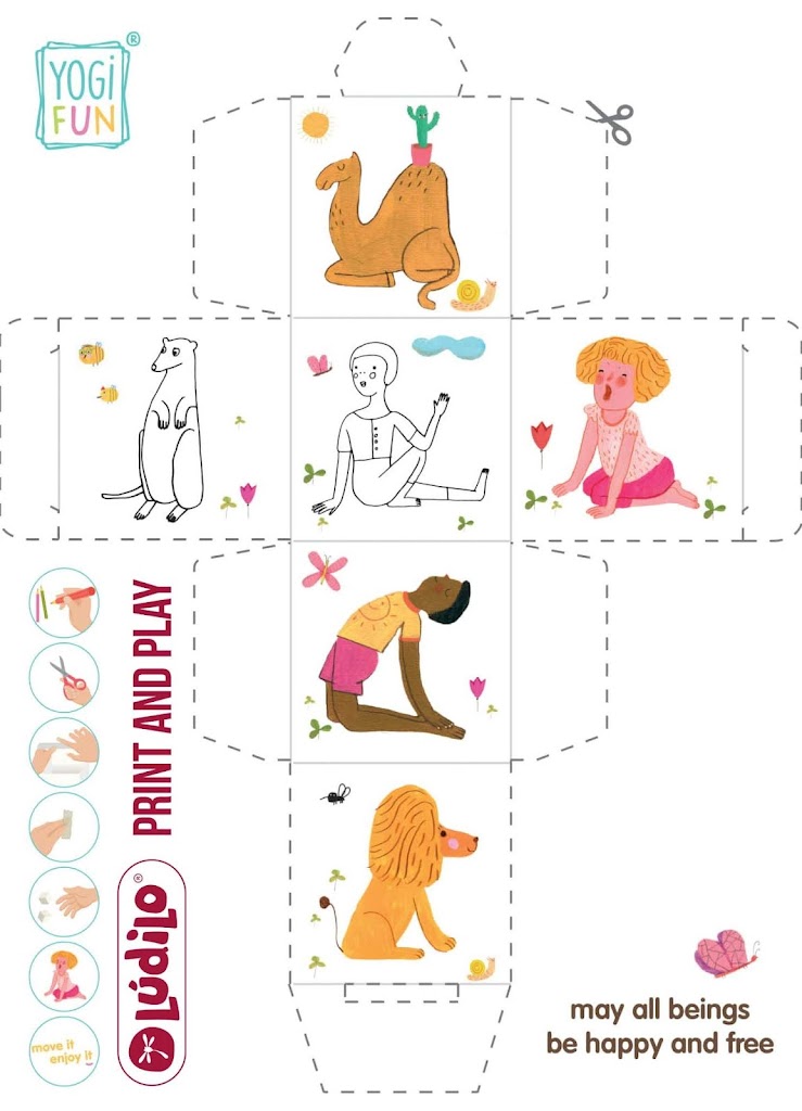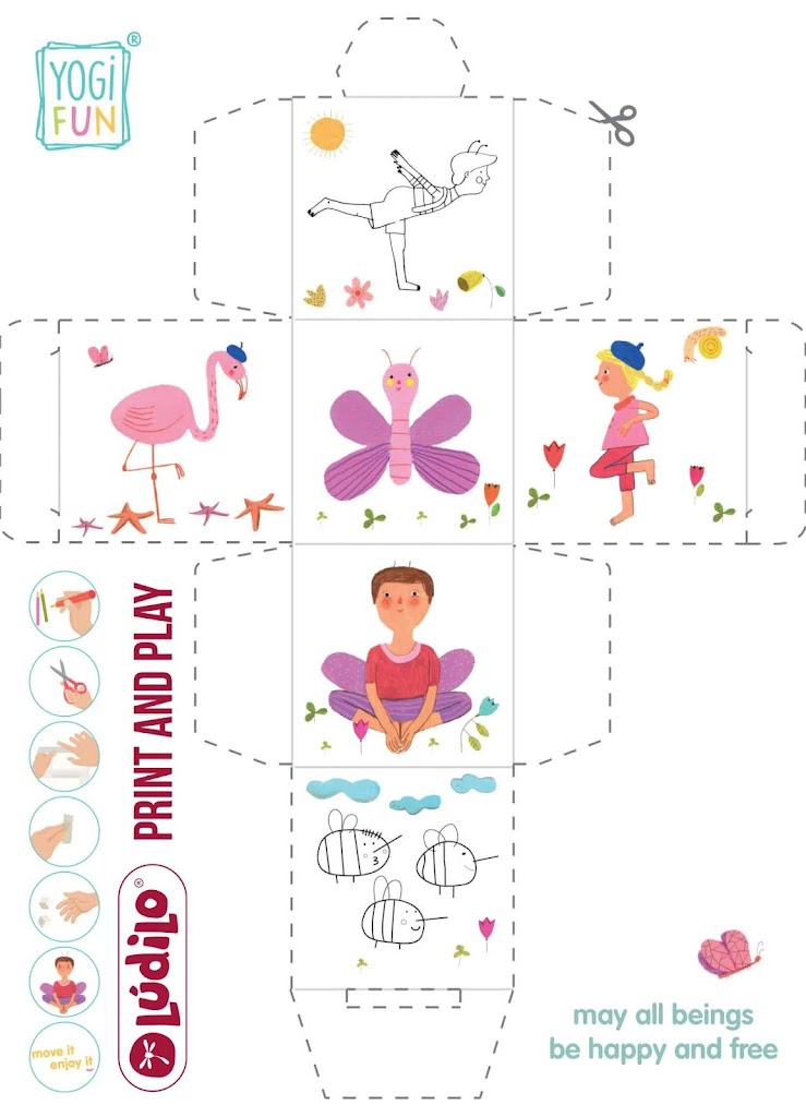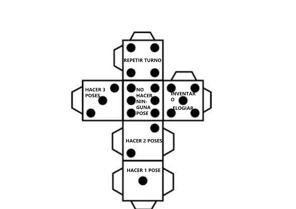 El dado de las instrucciones tiene 6 opciones: hacer 1 pose, hacer las 3 poses, no hacer ninguna, hacer las 3 y repetir turno, inventar una nueva o decir algo bonito a la persona que le toca a continuación.