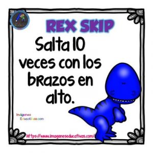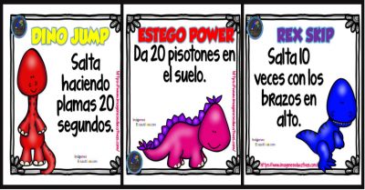 Con Brain Break Cadrs DINOSAURIOS cuando suena el temporizador, nos turnamos para tomar una tarjeta y TODOS hacemos lo que dice la carta. Si dice «hacer 20 saltos», todos hacemos 20 saltos juntos.