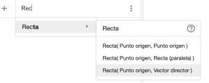 Ahora vamos a crear una recta en implícitas. Escribiremos las dos ecuaciones de los dos planos, por ejemplo:
