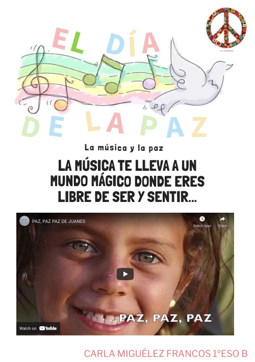 El 30 de Enero se celebró el Día de La Paz y La No Violencia, por este motivo, los alumnos y alumnas de primero de ESO han realizado unas preciosas postales con la herramienta Genially acompañadas de un mensaje musical.