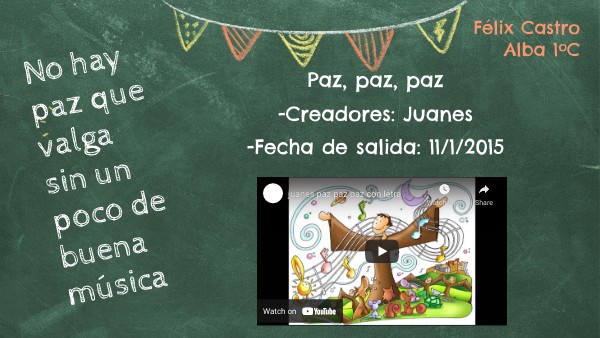 Tarjeta de música y paz de Lía López y Lucía Álvarez.
