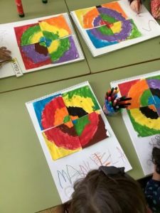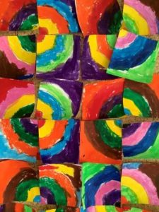 - Hacer una composición para el mural del pasillo con círculos al estilo Delaunay.