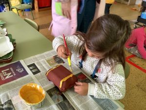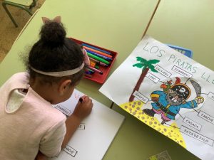 Por otro lado continuamos con la elaboración de los sables (técnica de papel maché) y casi terminamos los cofres (reciclando hueveras de cartón). Aprendimos nuevo vocabulario pirata (doblones, compinches,…).