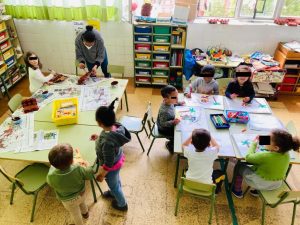 Hemos elegido entre todos el fondo de la lámina. Lo hemos hecho votando, el color con más votos ha sido el elegido. Esto nos ha servido para varias cosas: contar y contar, aprender a respetar la decisión de la mayoría, no frustrarnos si nuestro color no ha salido elegido…
