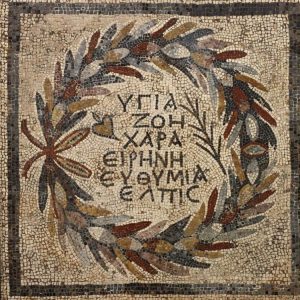 Hay un mosaico con una serie de deseos en griego que resumen perfectamente mis deseos para Año Nuevo, los de cada año: